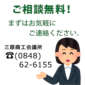 三原商工会議所青年部会の会員事業所を中心として、三原商工会議所に所属する会社や専門家が、三原市内の空き家に関する様々な相談に応じます。